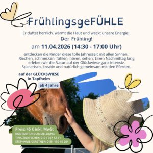 Außerdem malen oder basteln wir noch gemeinsam, um bleibende Erinnerungen an dieses pferdestarke und unvergessliche Erlebnis zu schaffen.